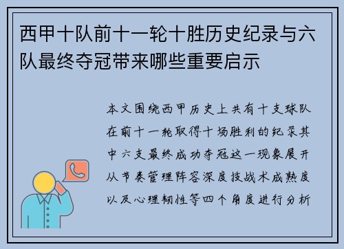 本文围绕阿尔特塔在一次采访中明确反对依赖迷信做法、强调球队应以理性态度面对赛季挑战的观点展开。文章首先以摘要统领全篇,随后从四个角度进行深入分析:其一,阿尔特塔为何坚持否定迷信效用;其二,理性态度如何成为球队稳定发展的基石;其三,这种理念在训练与比赛策略中的具体体现;其四,理性精神对团队文化与球员心...